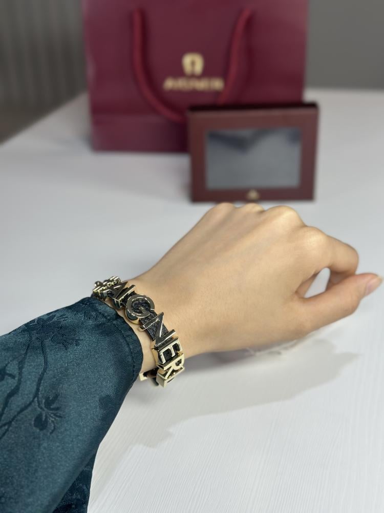سوار جلد اسود يحمل نهاية مشابهة للساعات تتكون من ثلاث خانات يتناسب مع مقاس اليد ملحق : دست باج ، بكس ، شريطة ، كيس مم اجنر
