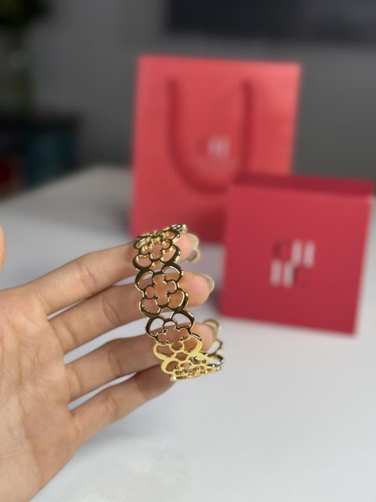 اسوار بانقل كارولينا سجنشر بزهرة كارولينا مطلي ذهبي Wide gold-plated cuff carolina herrira