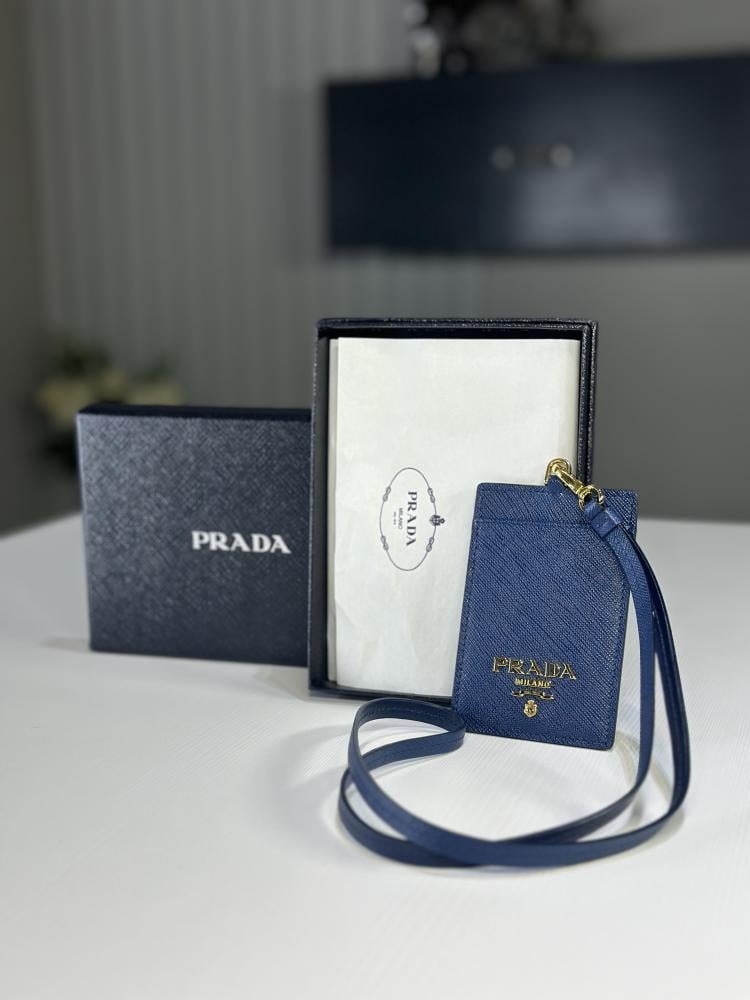 برادا كارد هولدر ازرق بجلد سفيانو القوي وشعار معدني بارز- ازرق/ ذهبي