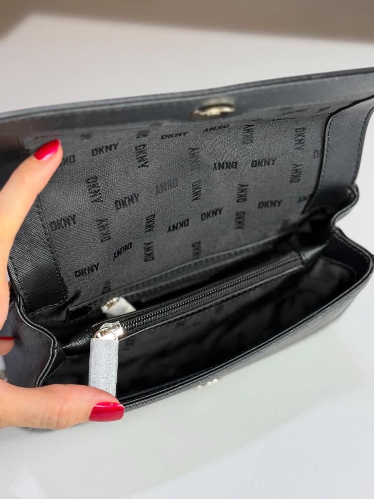 21x14x8cm ملحق : تغليف وكيس دكني حقيبة كروس بوديإغلاق مغناطيسي بغطاءجيوب داخليةشعار DKNY مزين بالكاملأجزاء معدنية ذهبية100% بولي كلوريد الفينيلالأصل: مستوردالألوان المتوفرة: اسود سجنشر