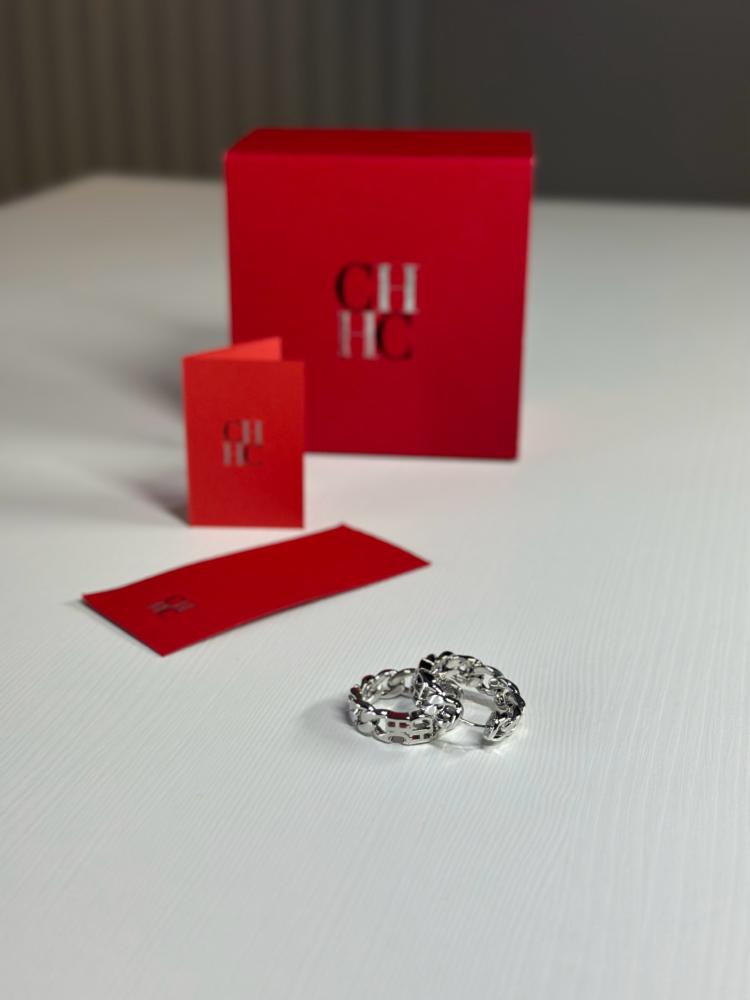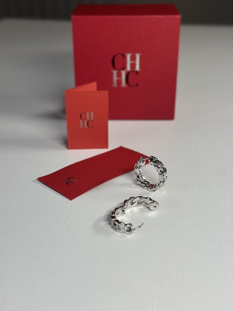 حلق كارولينا سلفر شين لوب لوقو- فضي