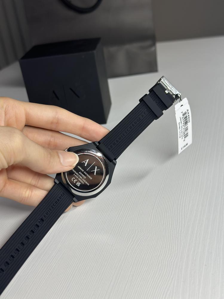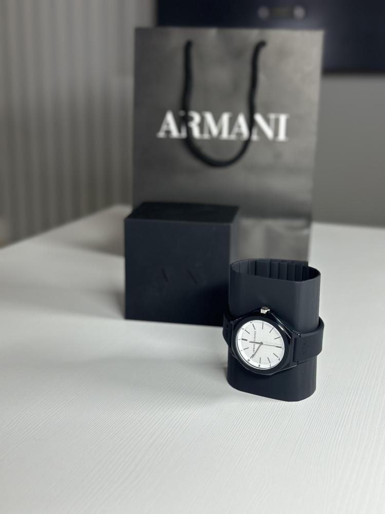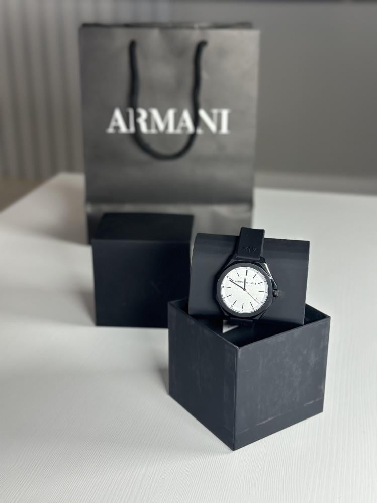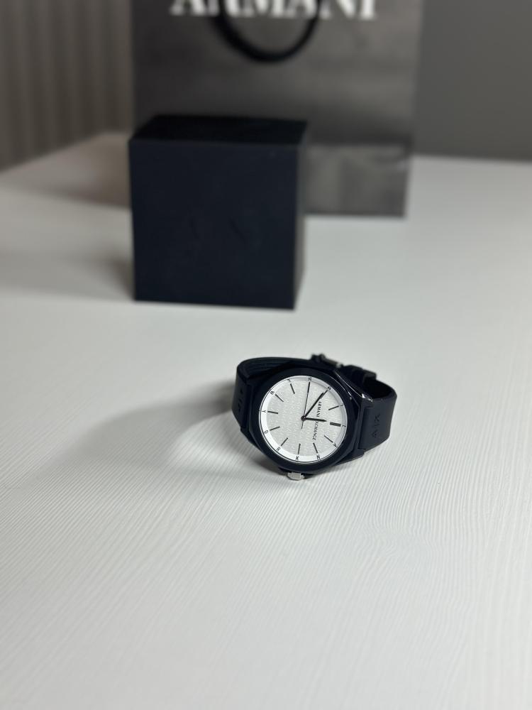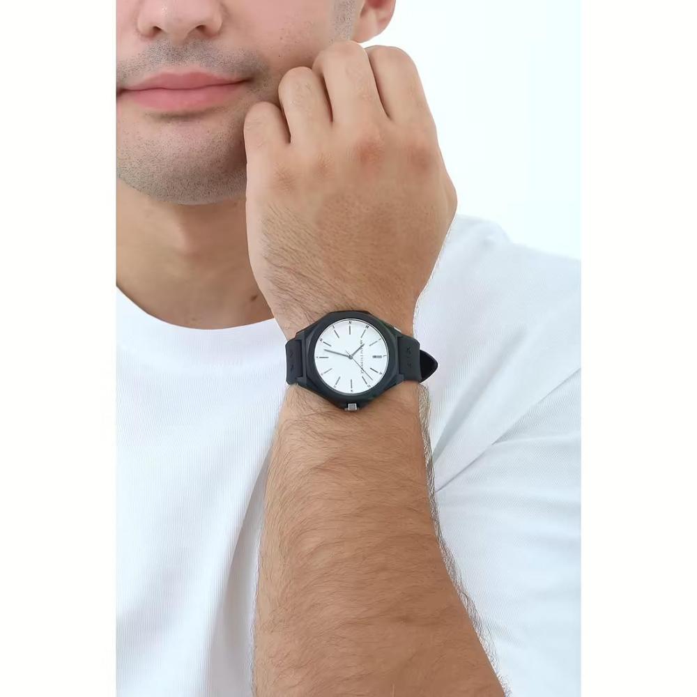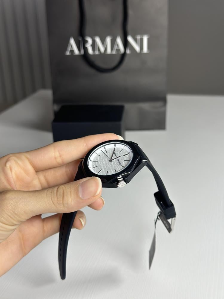ساعة ارماني وايت فيس سيليكون ستراب- اسود