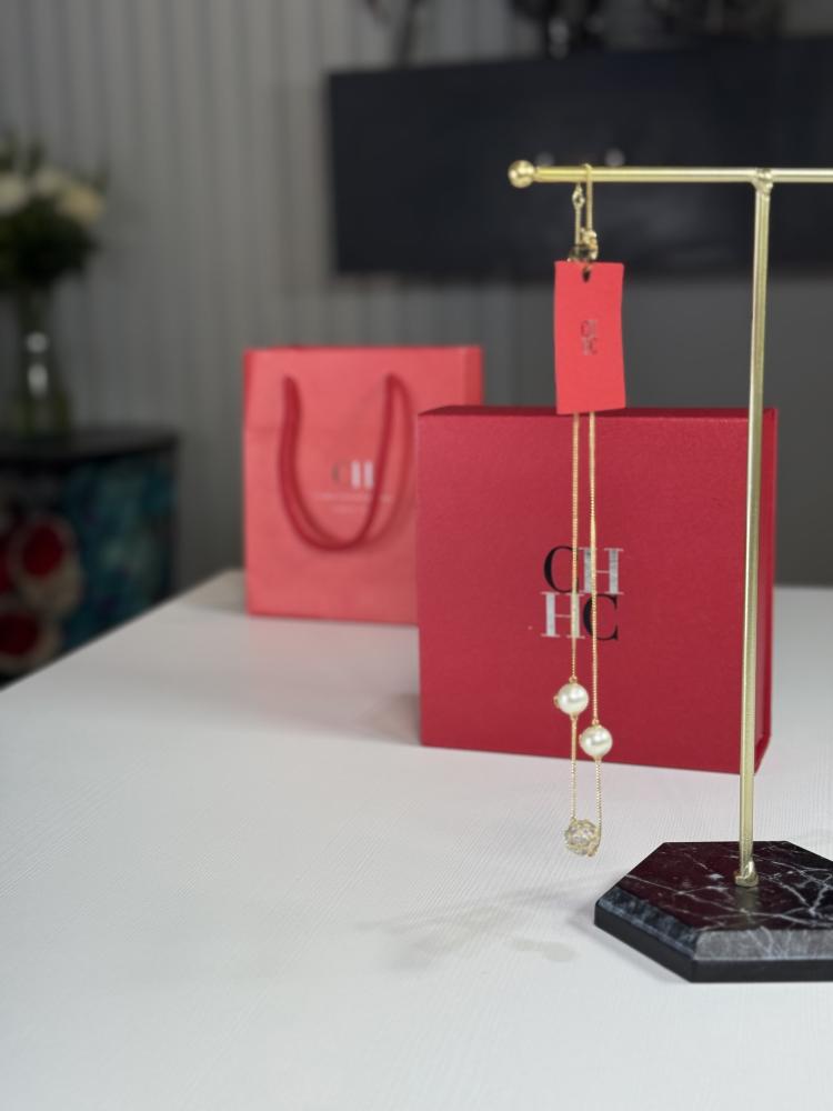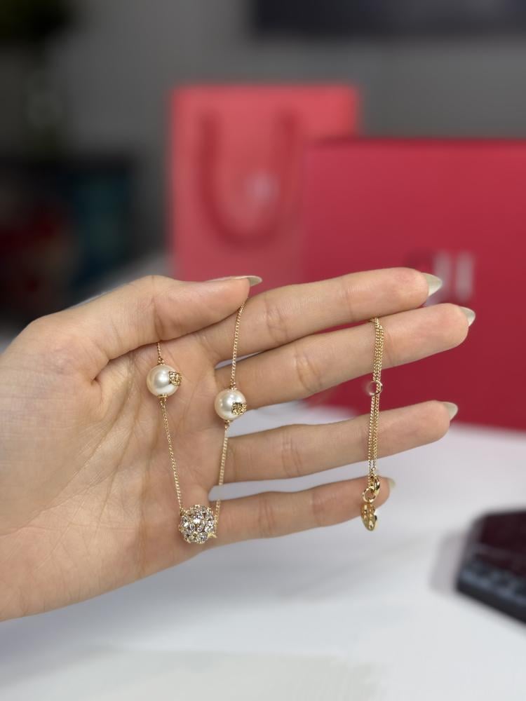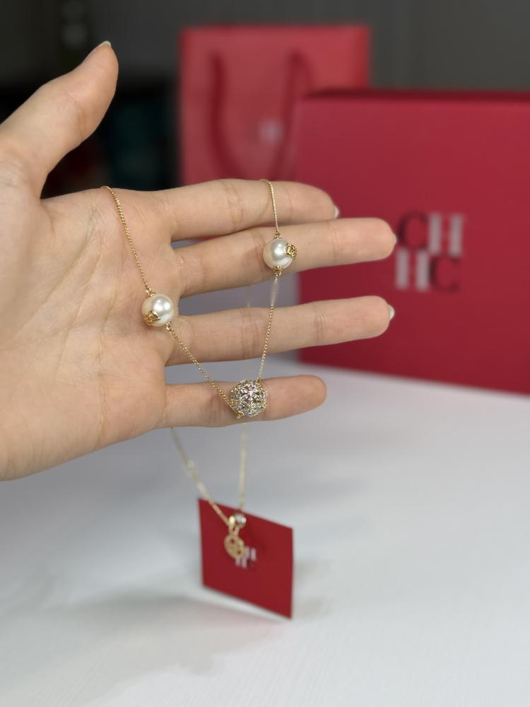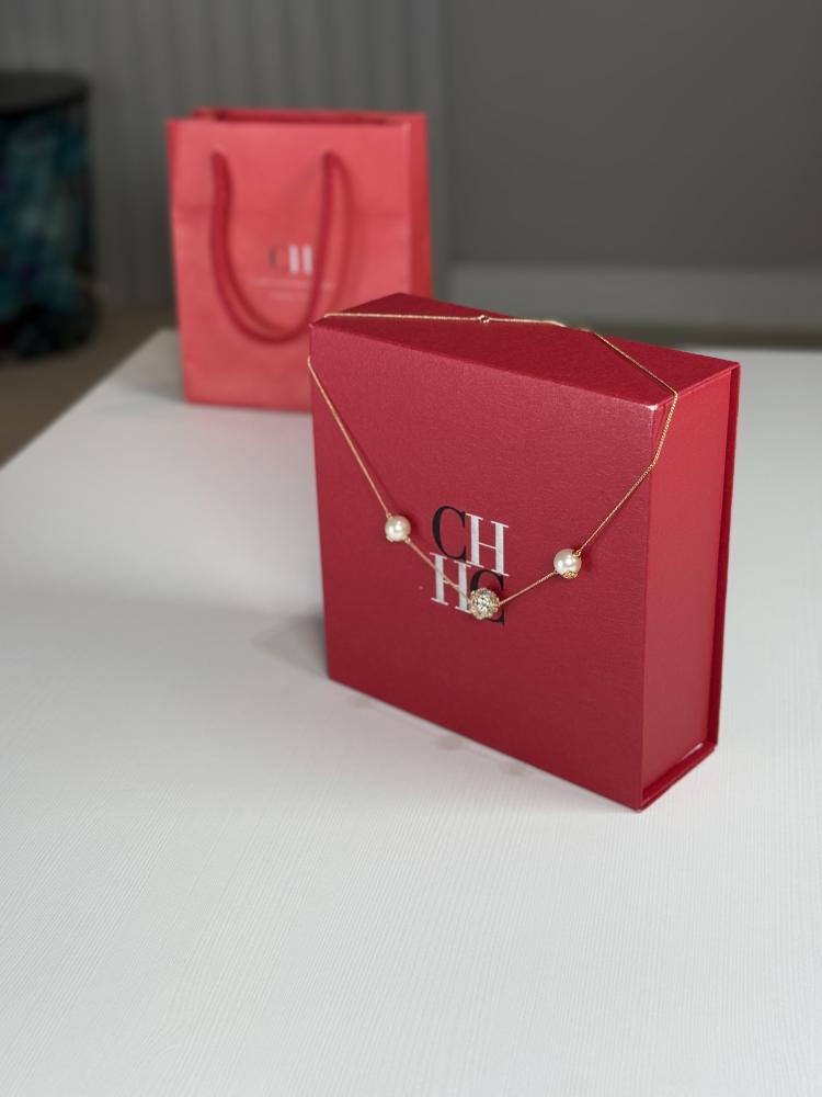 سلسلة كارولينا الذهبيه المطليه مع لؤلؤتين بلوقو كارولينا و مزين بالاحجار البراقه بعلامة الياسمين الخاصه بكارولينا المقاس: مقاس واحد به خانتين للتحكم بالطول حسب الرغبه الملحقات: بكس/ كيس