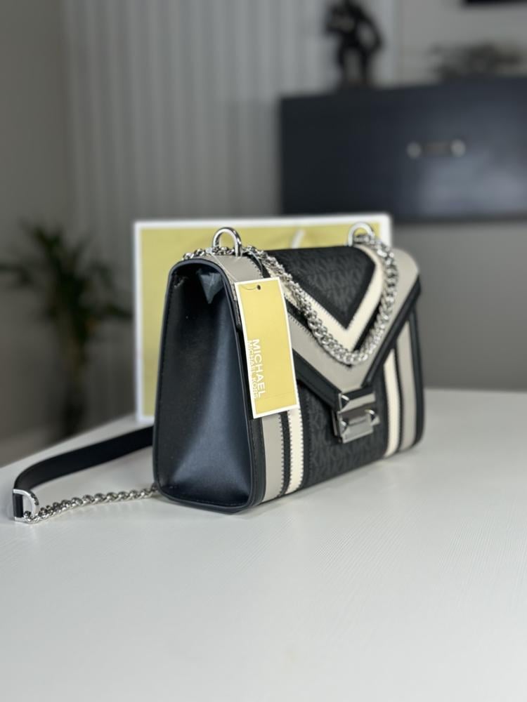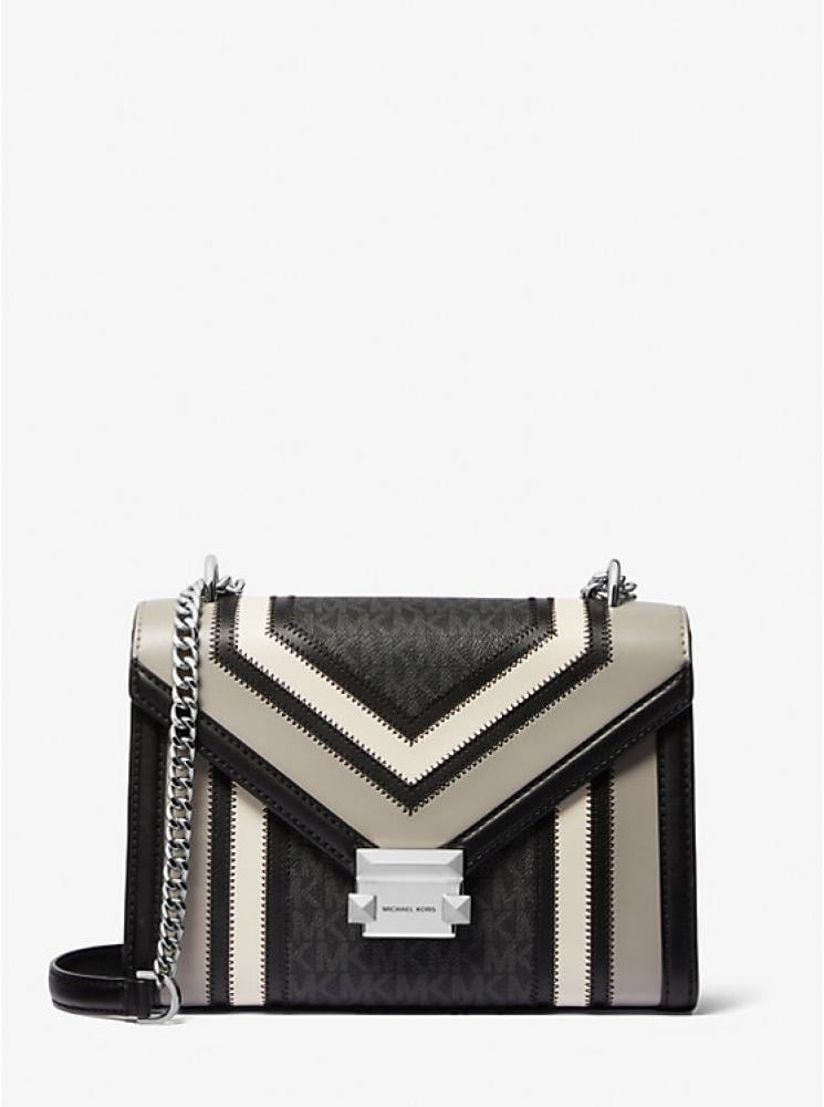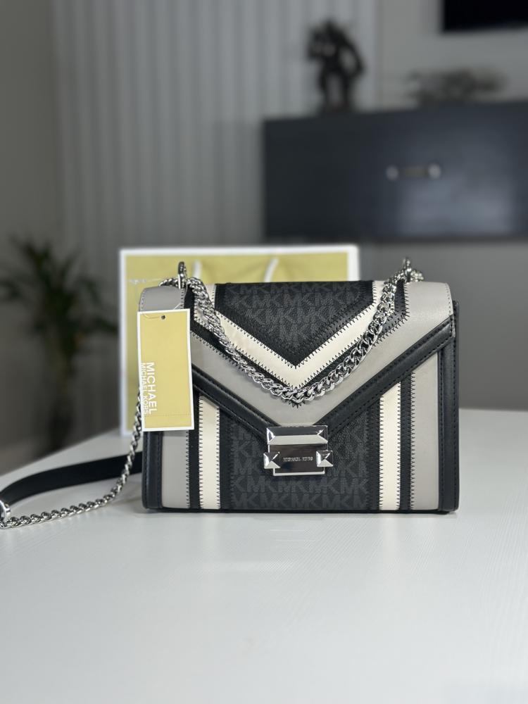 مايكل كورس whitney شنطة كتف ويتني فلاب- اسود سجنشر/ رمادي