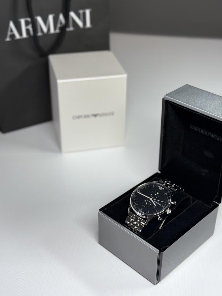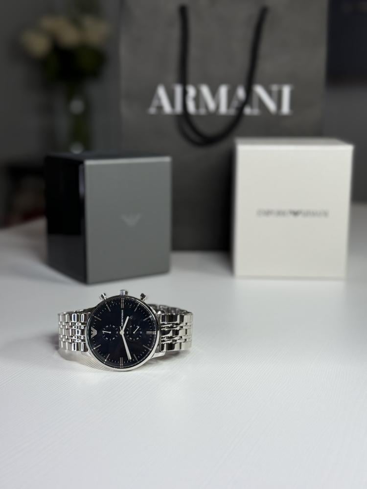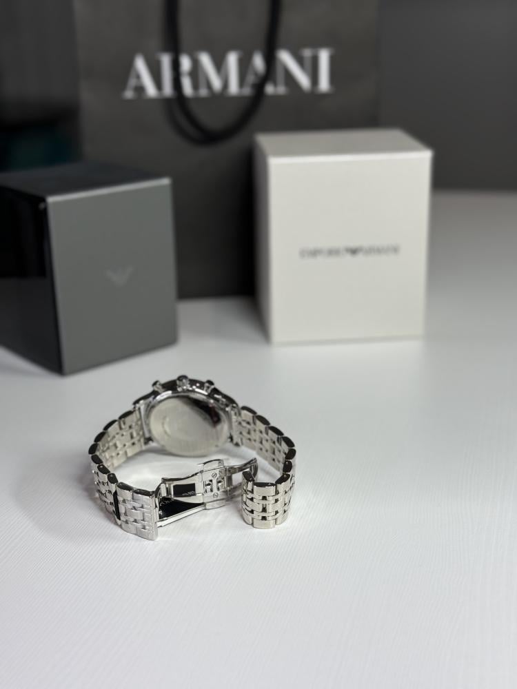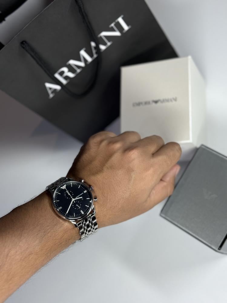 امبوريو ارماني عنوان الفخامة بالمينا الداكن والستانلس ستيل المينا 43mm السير 22mm ملحق : بكس وكيس ارماني