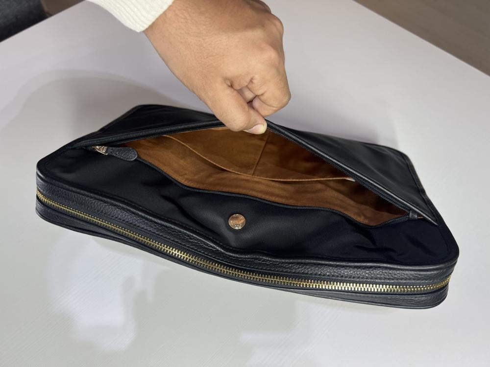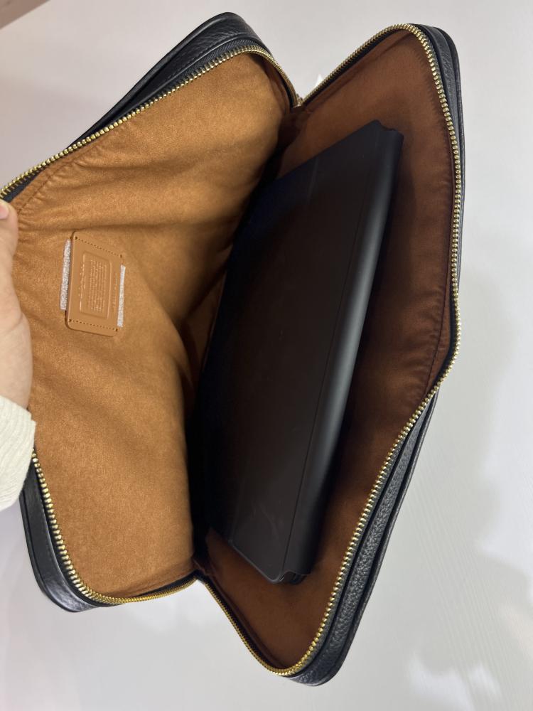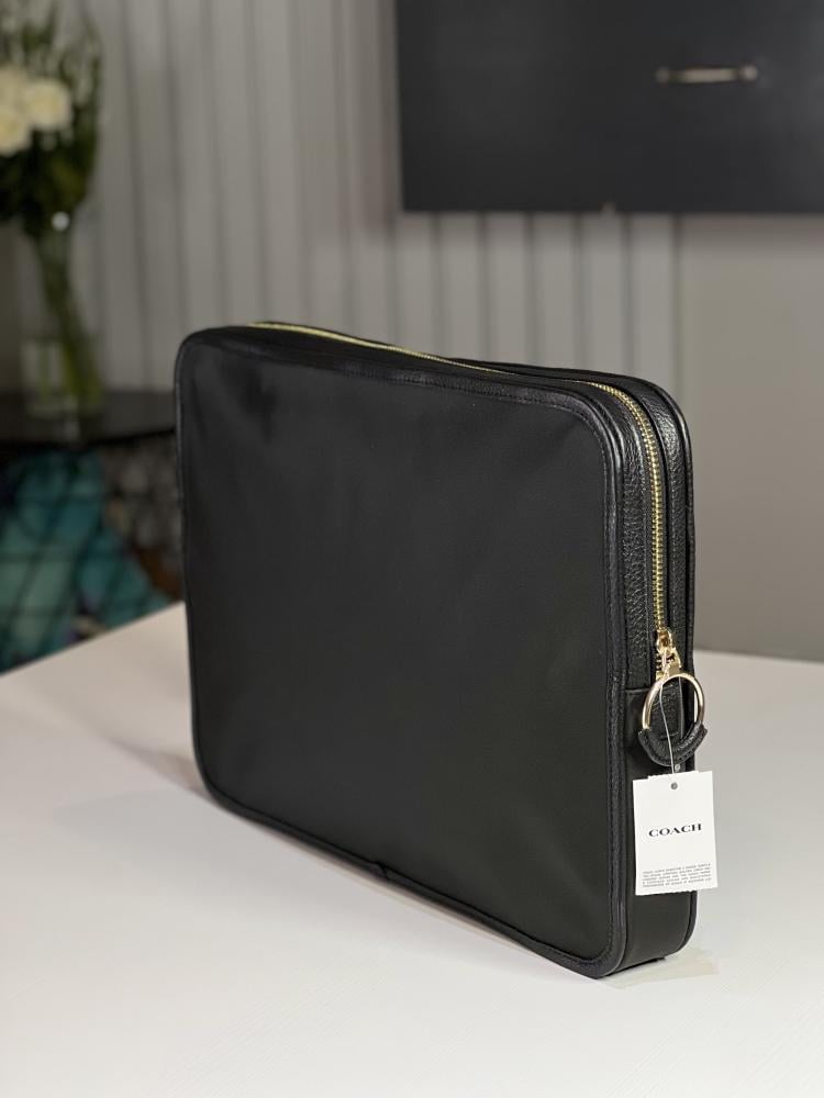 غلاف نسائي من كوتش نايلون بحواف جلدية سهل التنظيف ويتسع للابتوب / ايباد او الاثنين معا بالاضافة الى جيب جانبي بخانتين تخزينيتسع لابتوب ١٤ انش / ١٣ انش/ جميع اجهزة الايبادالطول ٣٧ سمالارتفاع ٢٦ سمالعرض ٤ سمملحق : تغليف كوتش ، ستكر ، كيس